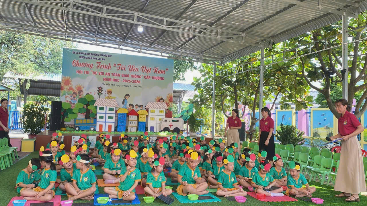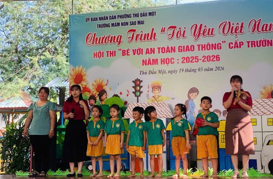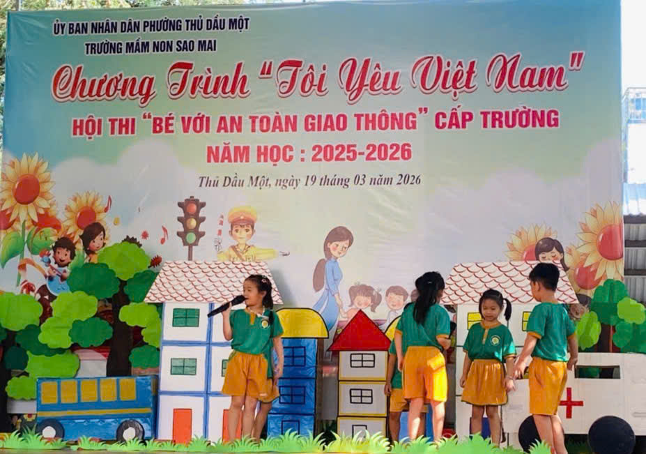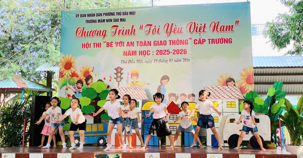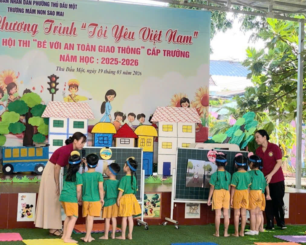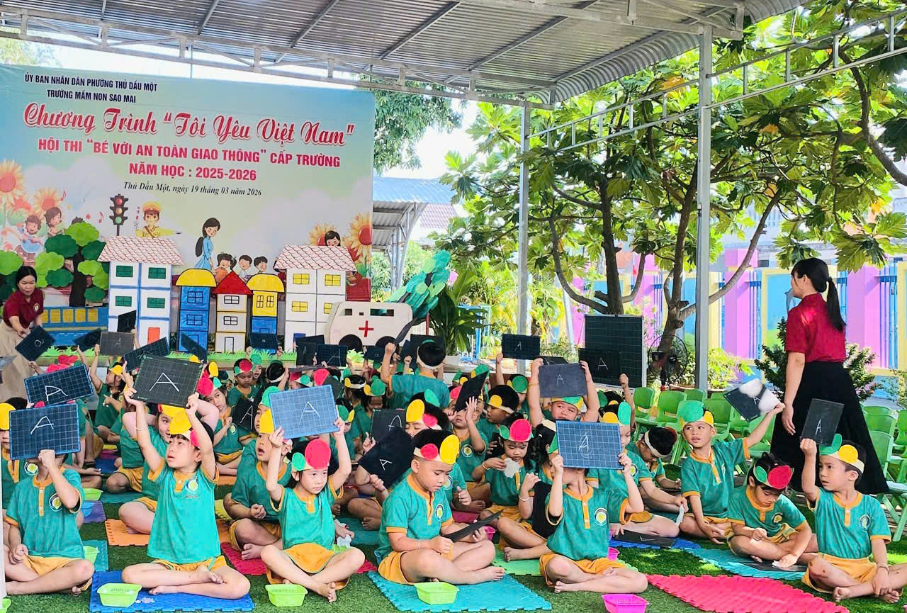 Sáng nay, ngày 19/03/2026, Trường Mầm non Sao Mai phường Thủ Dầu Một đã tổ chức thành công Hội thi “Bé với An toàn giao thông” cấp trường trong không khí vui tươi, sôi nổi và đầy ý nghĩa.