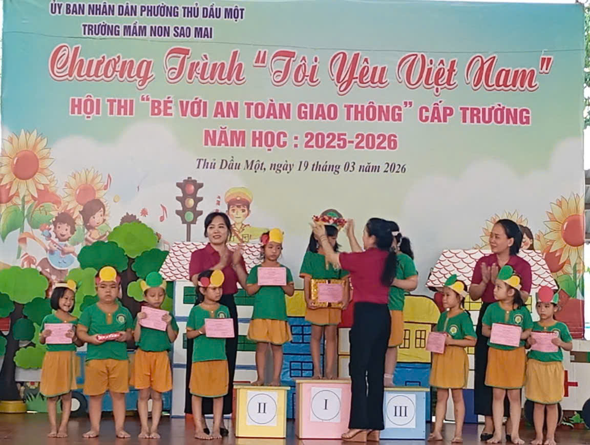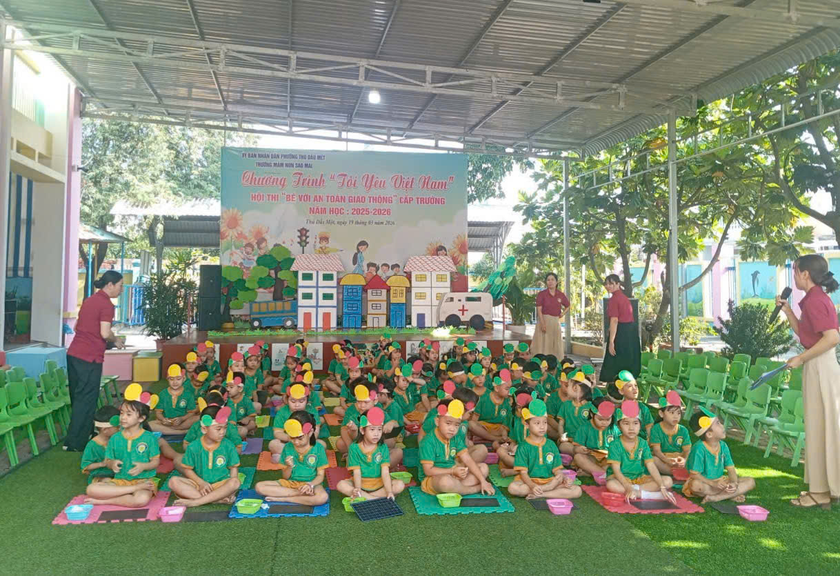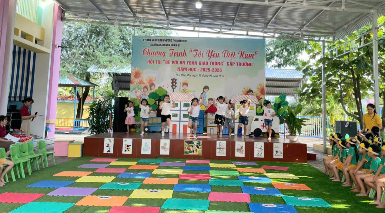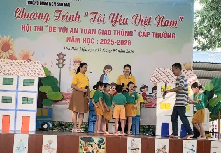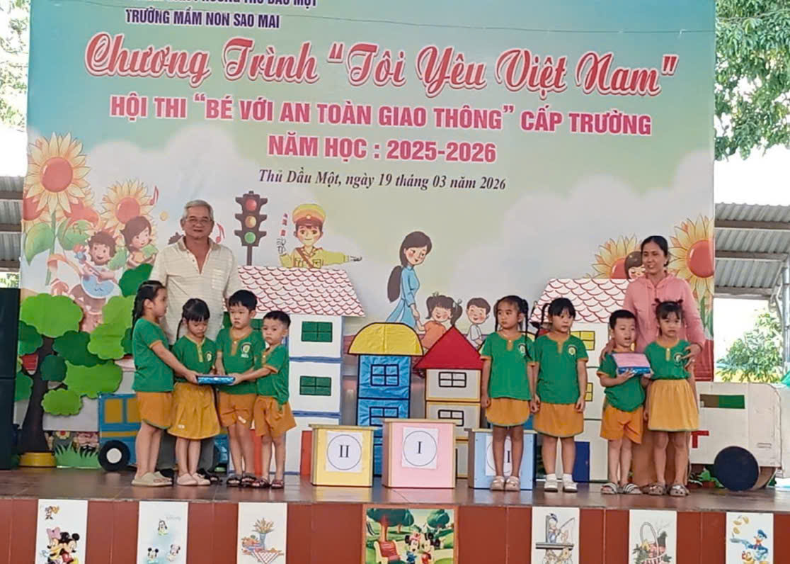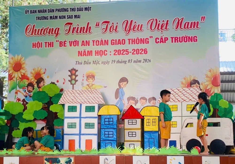 Sáng nay, ngày 19/03/2026, Trường Mầm non Sao Mai phường Thủ Dầu Một đã tổ chức thành công Hội thi “Bé với An toàn giao thông” cấp trường trong không khí vui tươi, sôi nổi và đầy ý nghĩa.