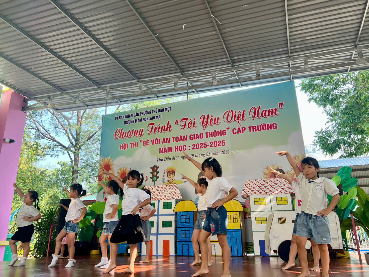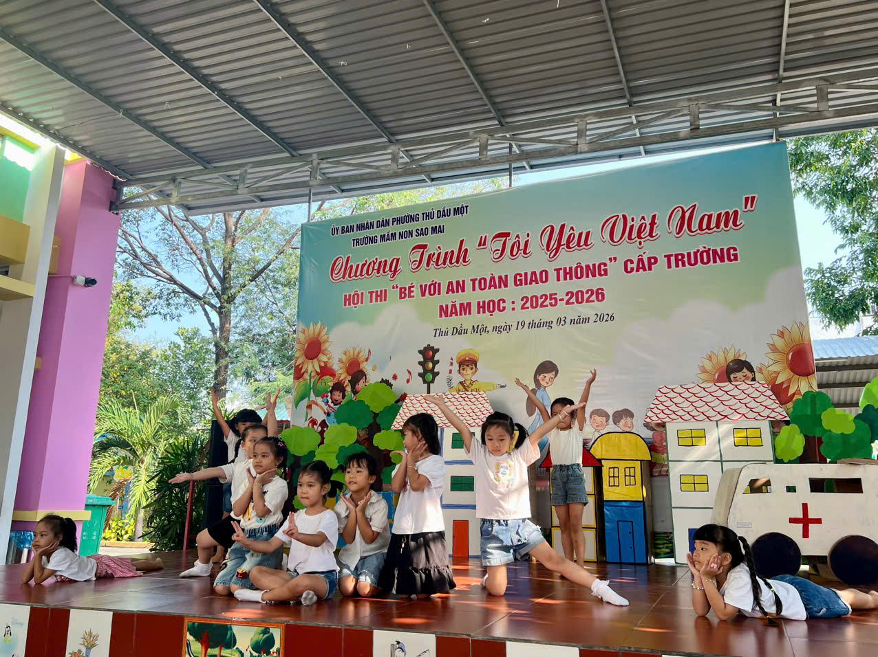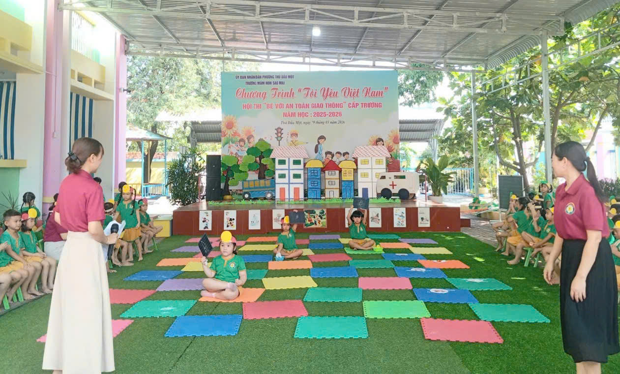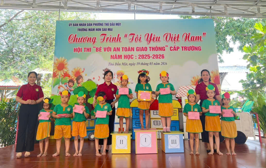 Sáng nay, ngày 19/03/2026, Trường Mầm non Sao Mai phường Thủ Dầu Một đã tổ chức thành công Hội thi “Bé với An toàn giao thông” cấp trường trong không khí vui tươi, sôi nổi và đầy ý nghĩa.