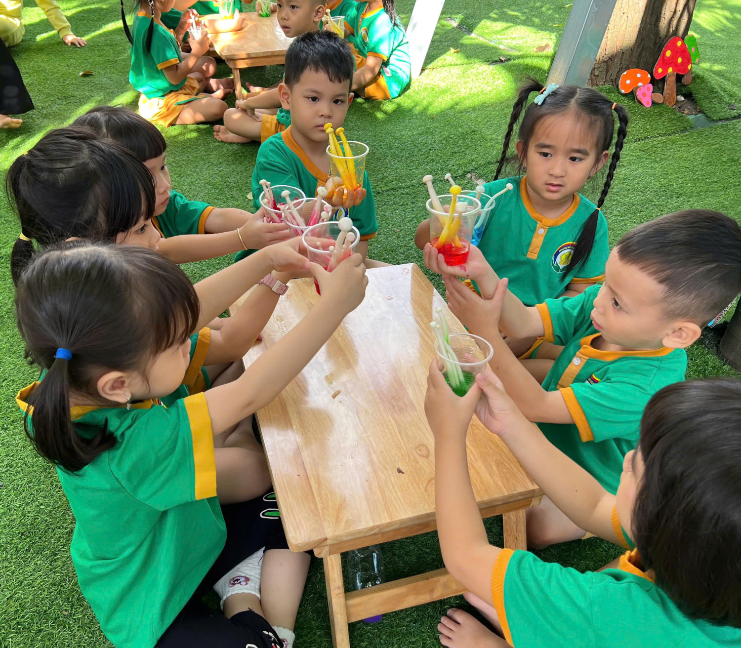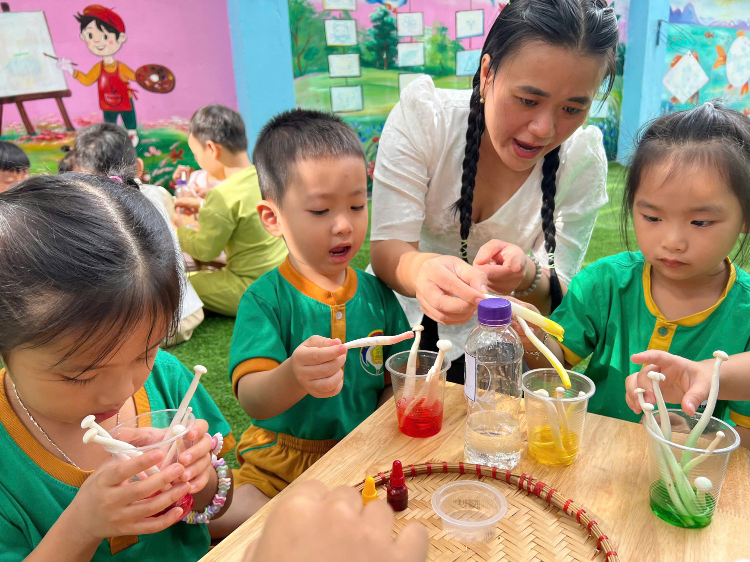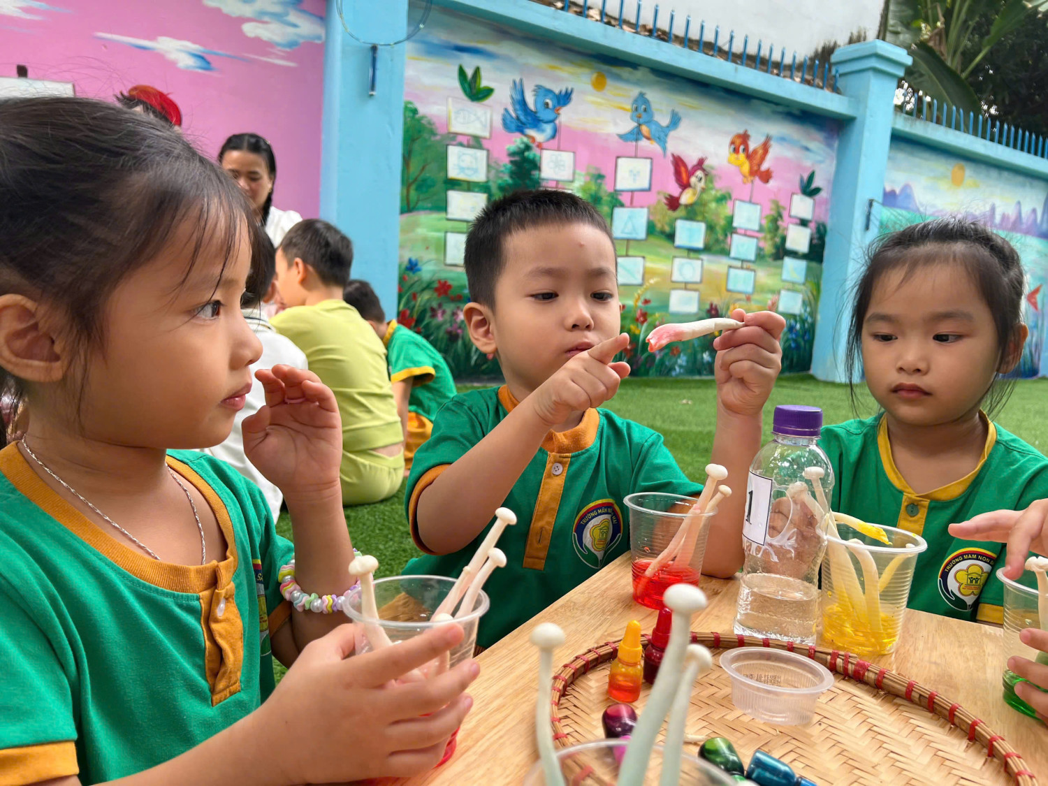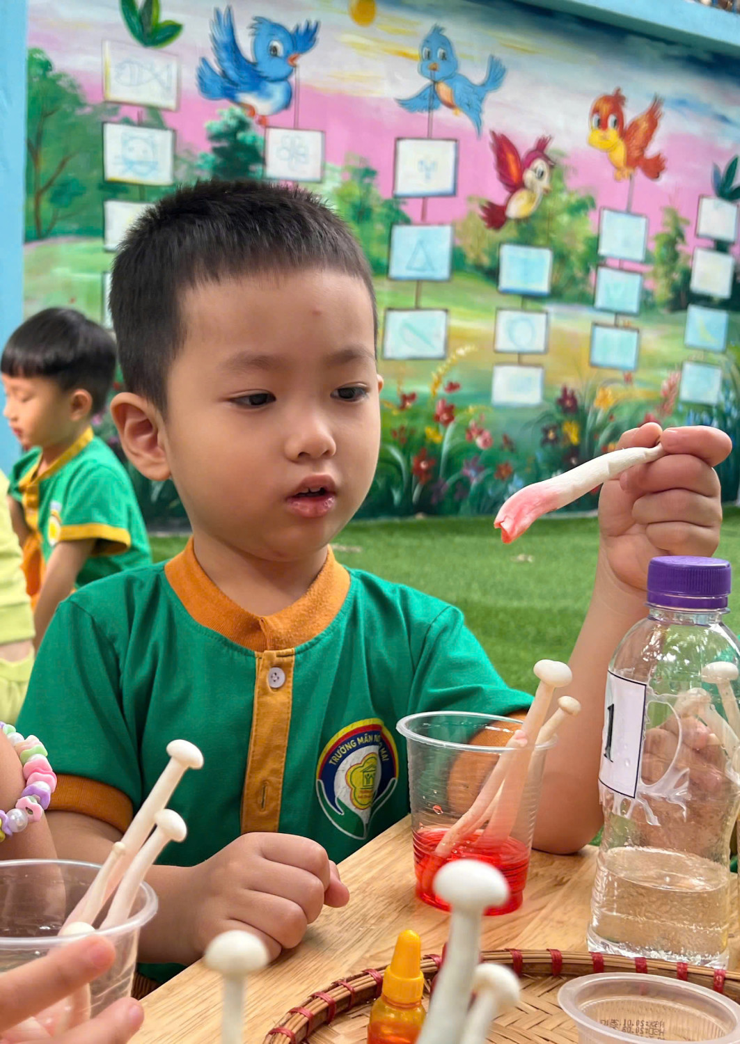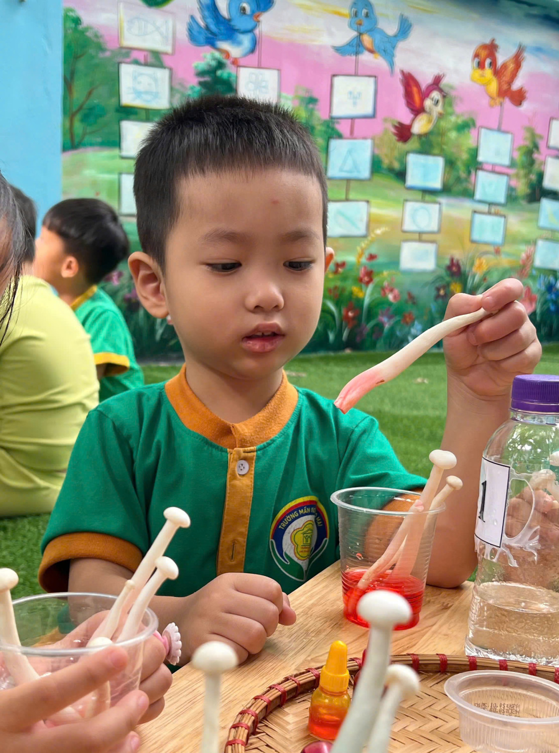Hôm nay, các bé lớp Chồi – Trường Mầm non Sao Mai đã có một buổi trải nghiệm vô cùng hào hứng với hoạt động “Nấm đổi màu” 🧪🎨
