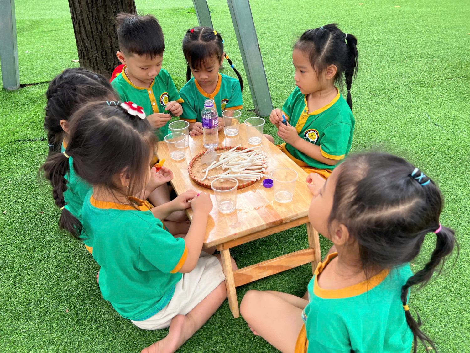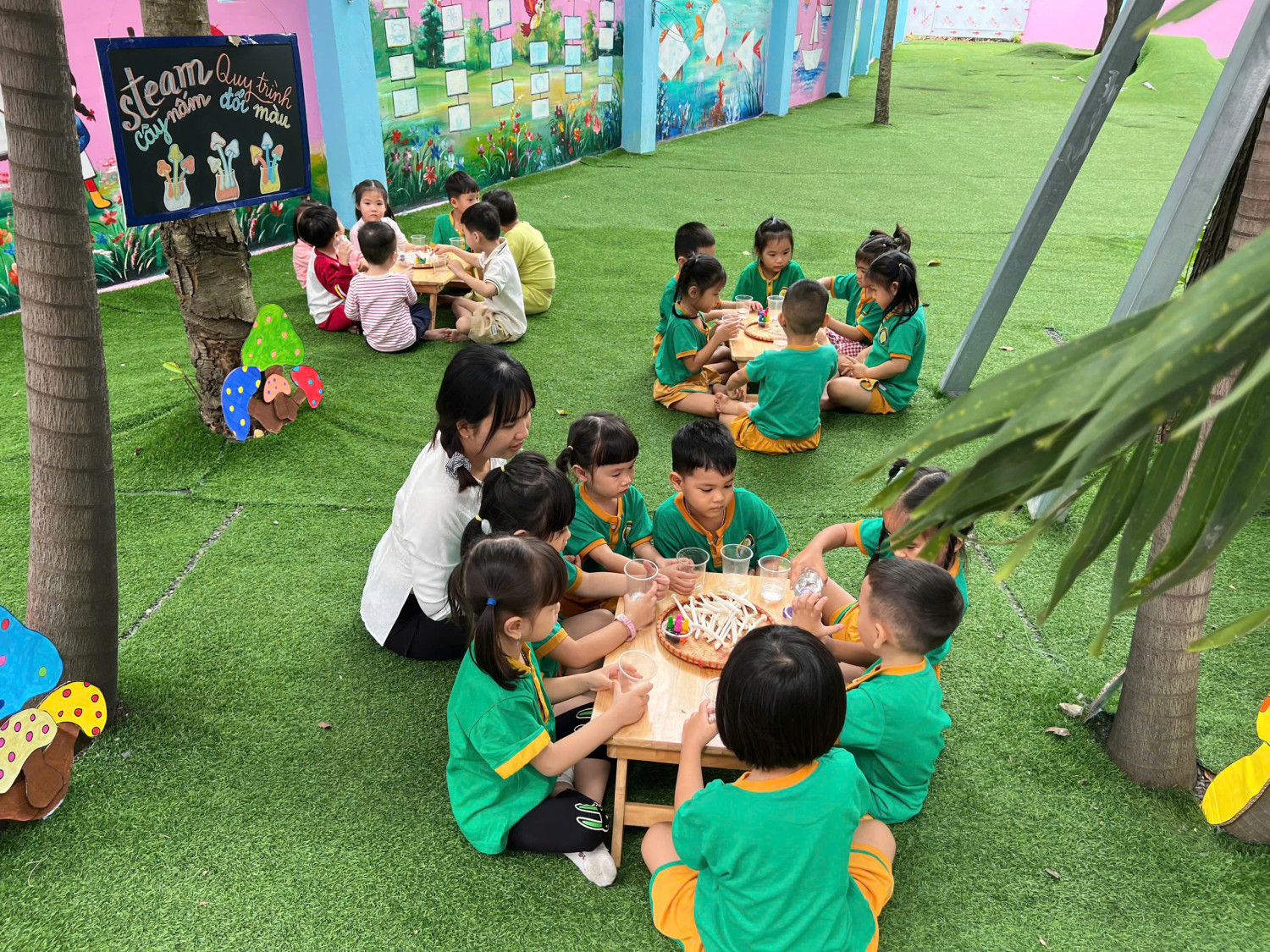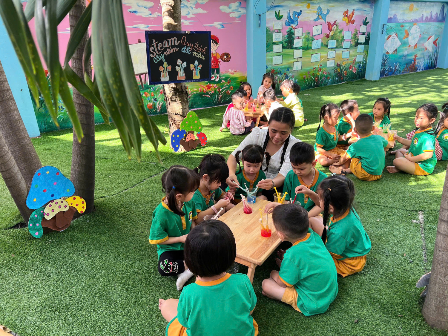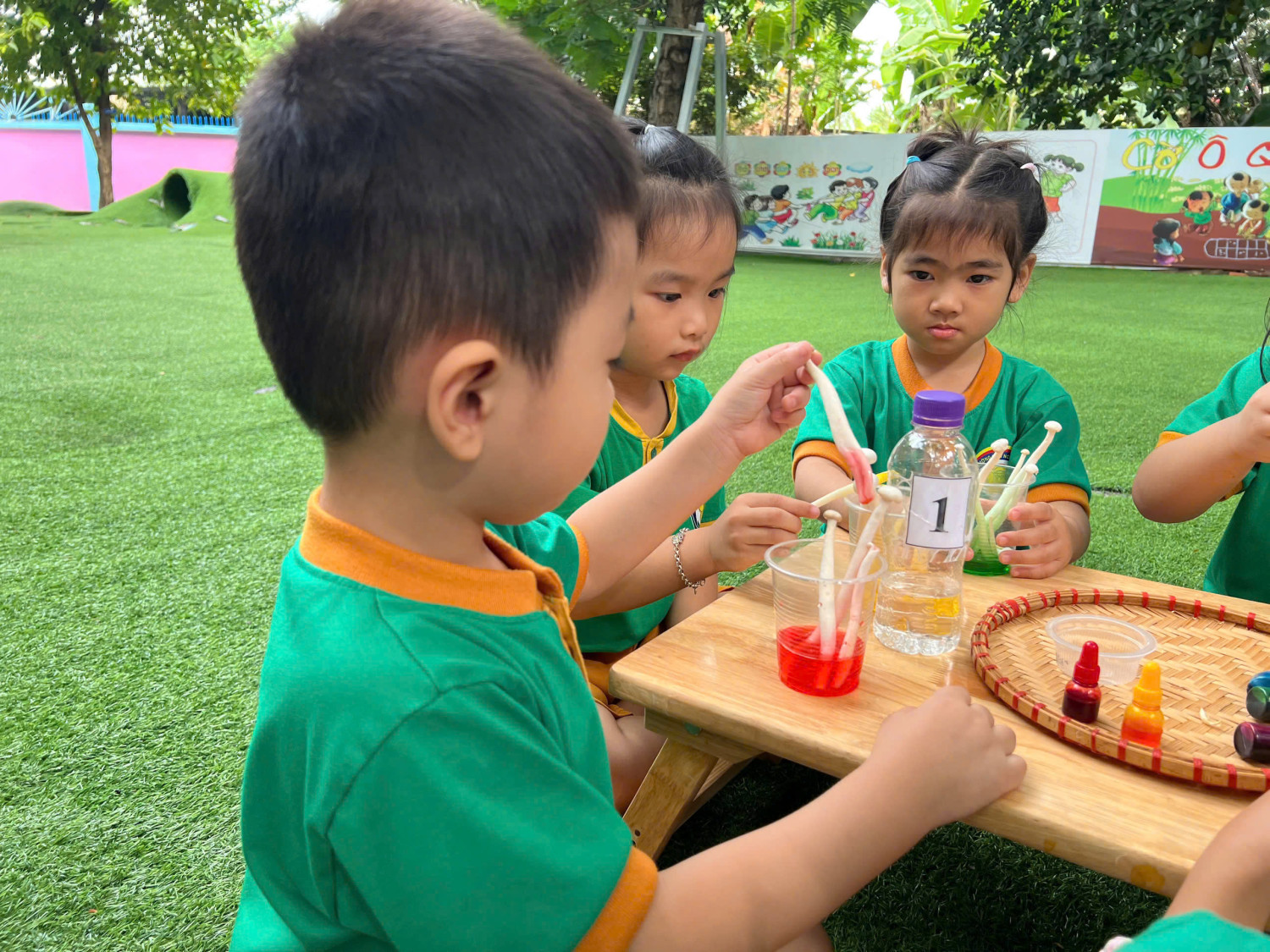 Hôm nay, các bé lớp Chồi – Trường Mầm non Sao Mai đã có một buổi trải nghiệm vô cùng hào hứng với hoạt động “Nấm đổi màu” 🧪🎨
