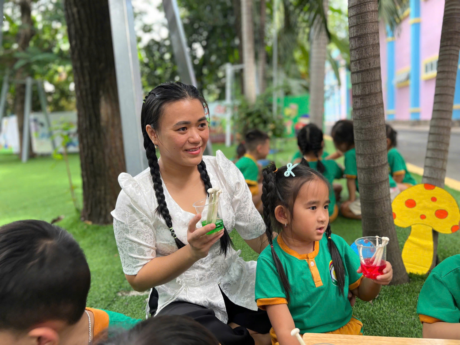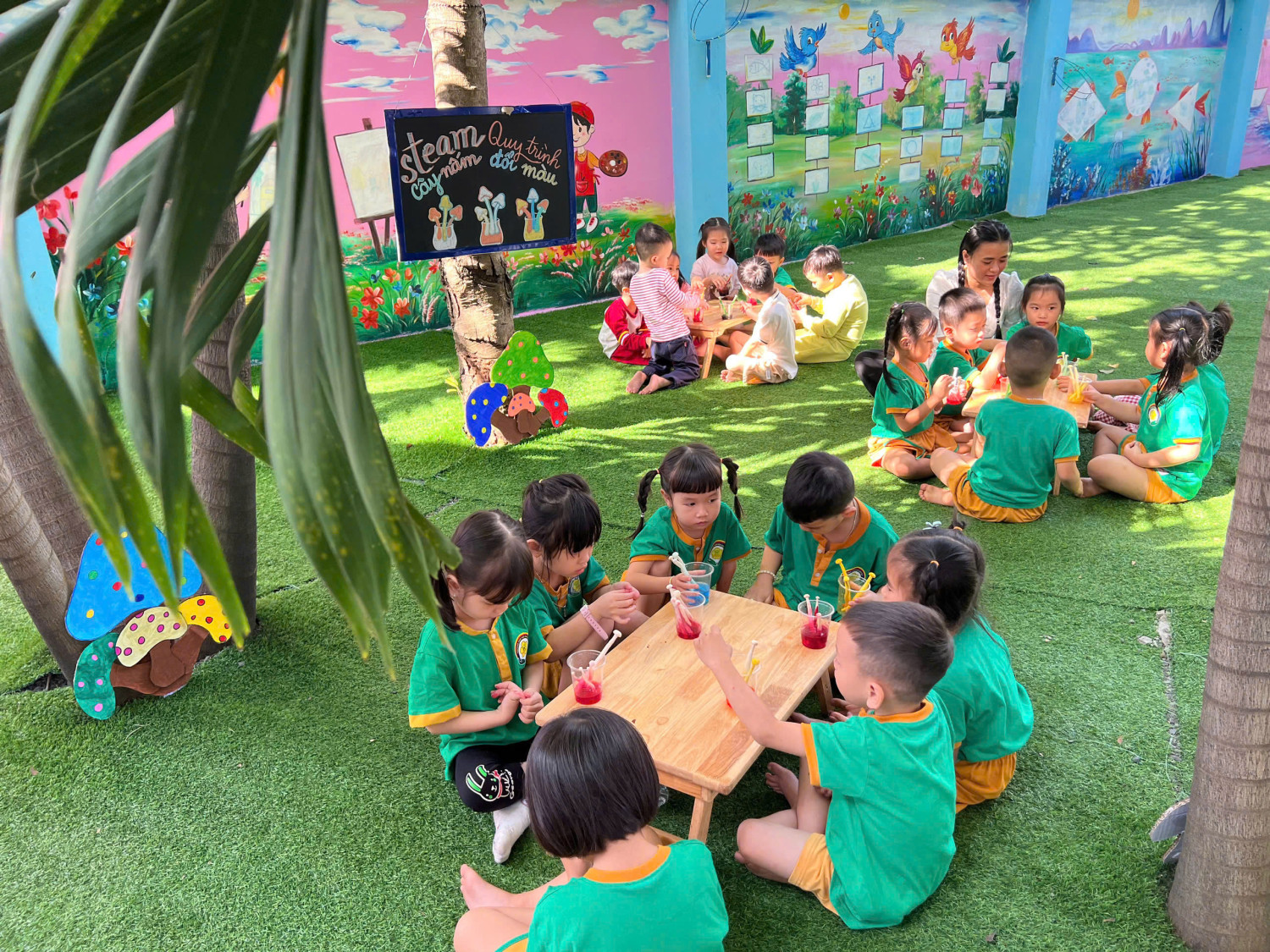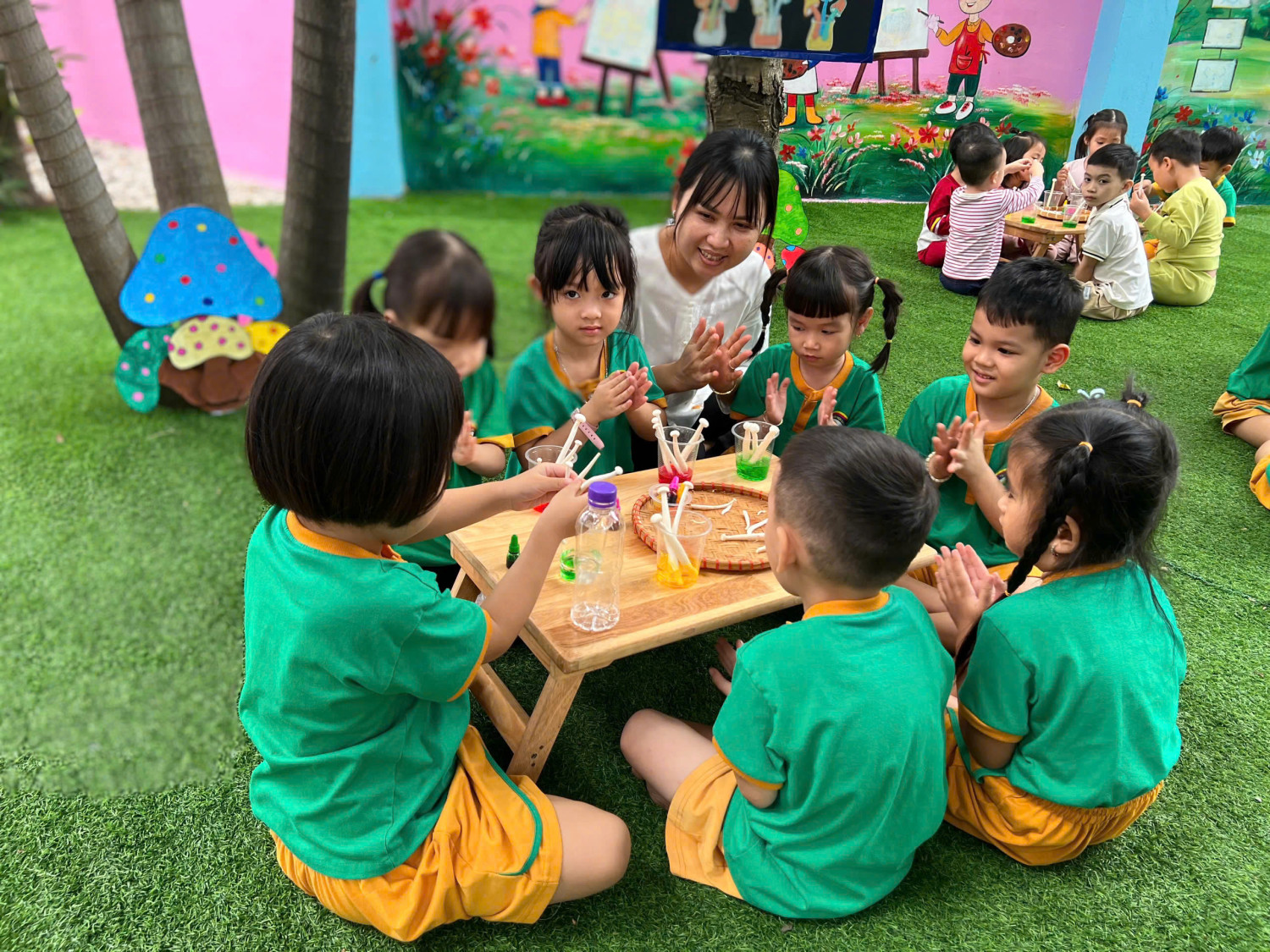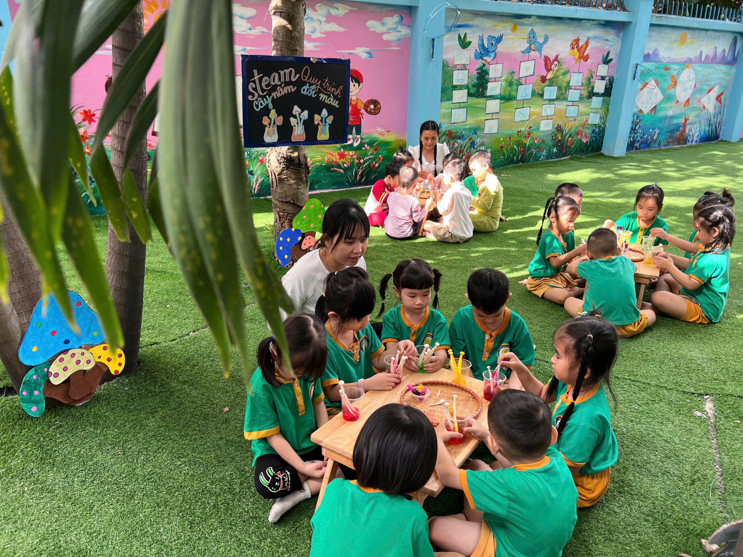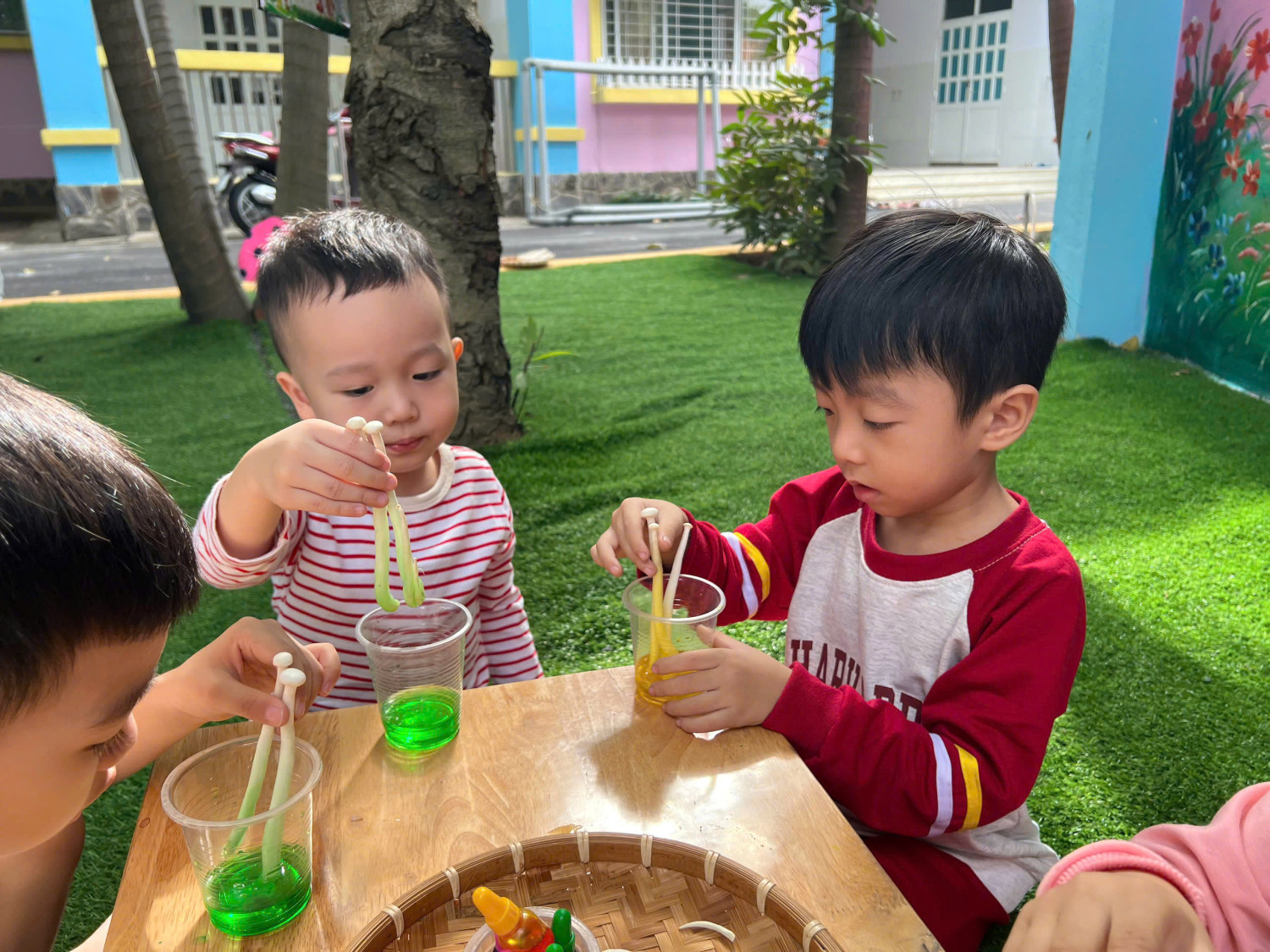 Hôm nay, các bé lớp Chồi – Trường Mầm non Sao Mai đã có một buổi trải nghiệm vô cùng hào hứng với hoạt động “Nấm đổi màu” 🧪🎨