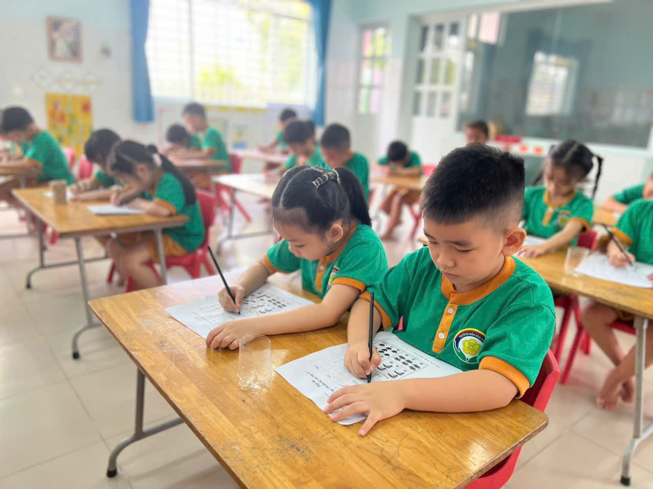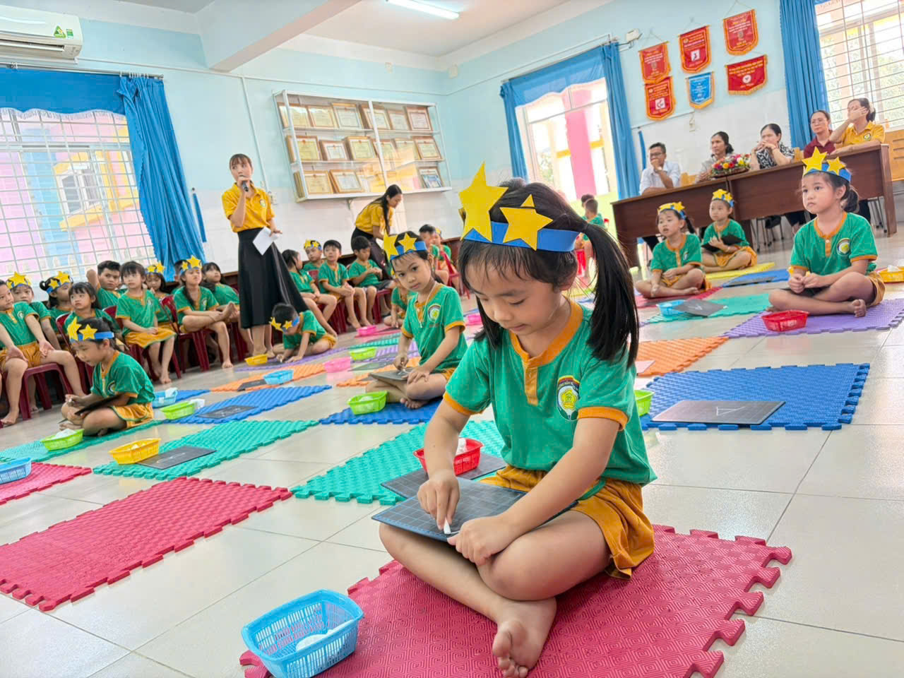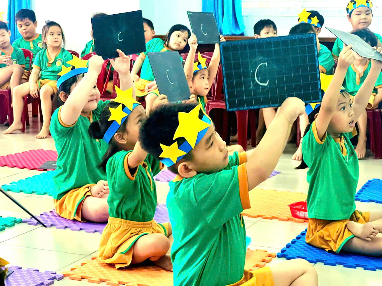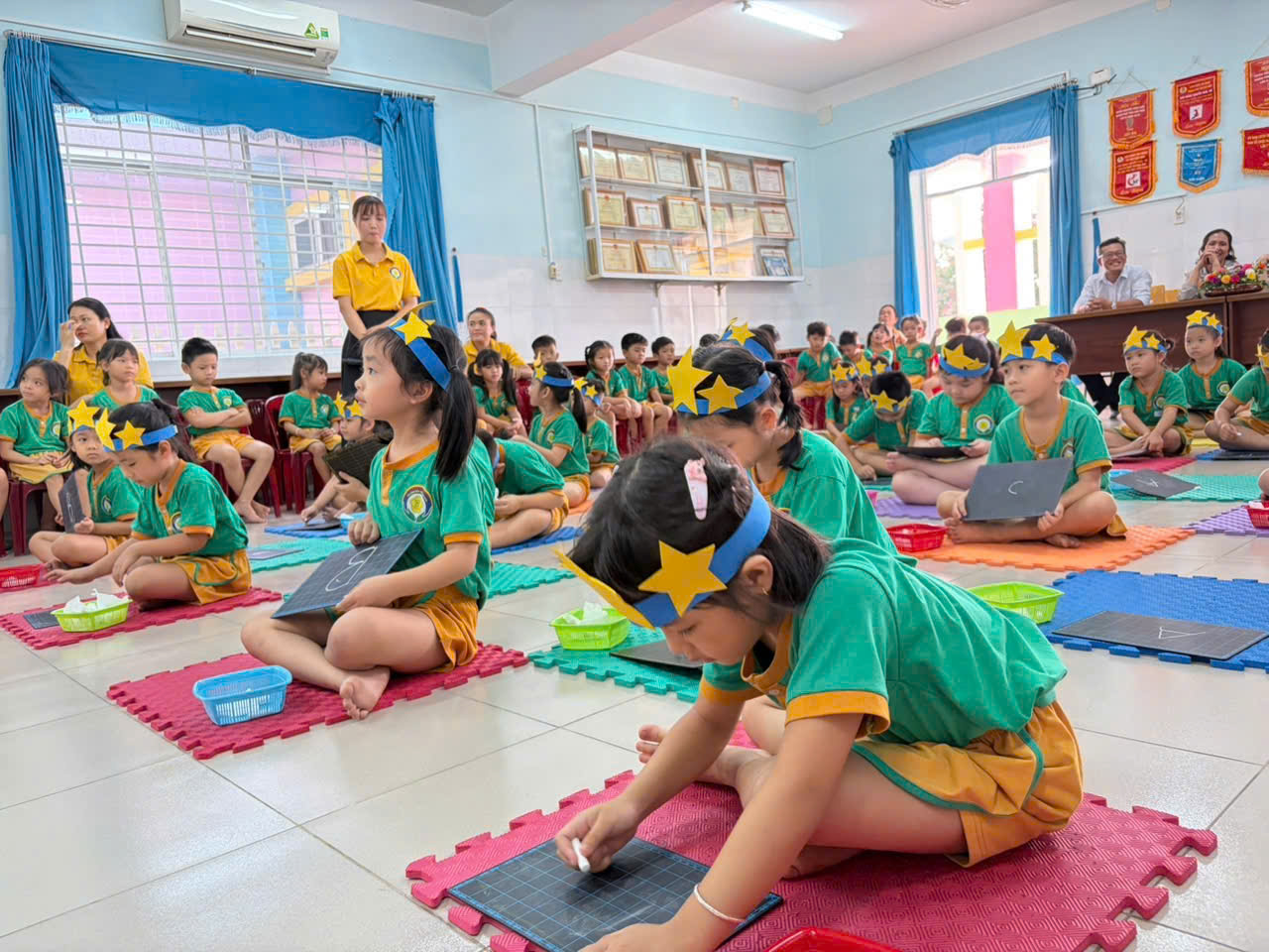 🎉 Đặc biệt, phần thi kỹ năng đã để lại nhiều ấn tượng sâu sắc khi các bé thực hành những thói quen cần thiết như xếp sách vở gọn gàng, giơ tay phát biểu, giữ trật tự trong lớp học. Đây chính là hành trang quan trọng giúp các con không còn bỡ ngỡ khi bước vào lớp 1.