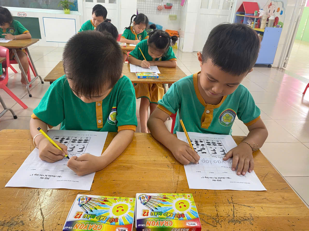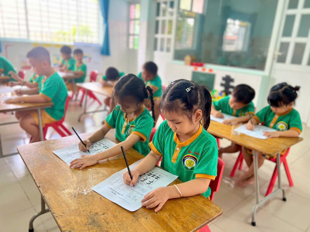 📝 Hội thi diễn ra trong không khí sôi nổi với sự tham gia nhiệt tình của các bé đến từ các lớp mẫu giáo lớn. Các phần thi được thiết kế phong phú, phù hợp với lứa tuổi như: làm quen chữ cái, nhận biết số, kỹ năng cầm bút, tô màu, cũng như các tình huống giao tiếp và xử lý đơn giản trong học tập. Qua từng phần thi, các bé không chỉ thể hiện kiến thức mà còn bộc lộ sự nhanh nhẹn, tự tin và khả năng tư duy của mình.